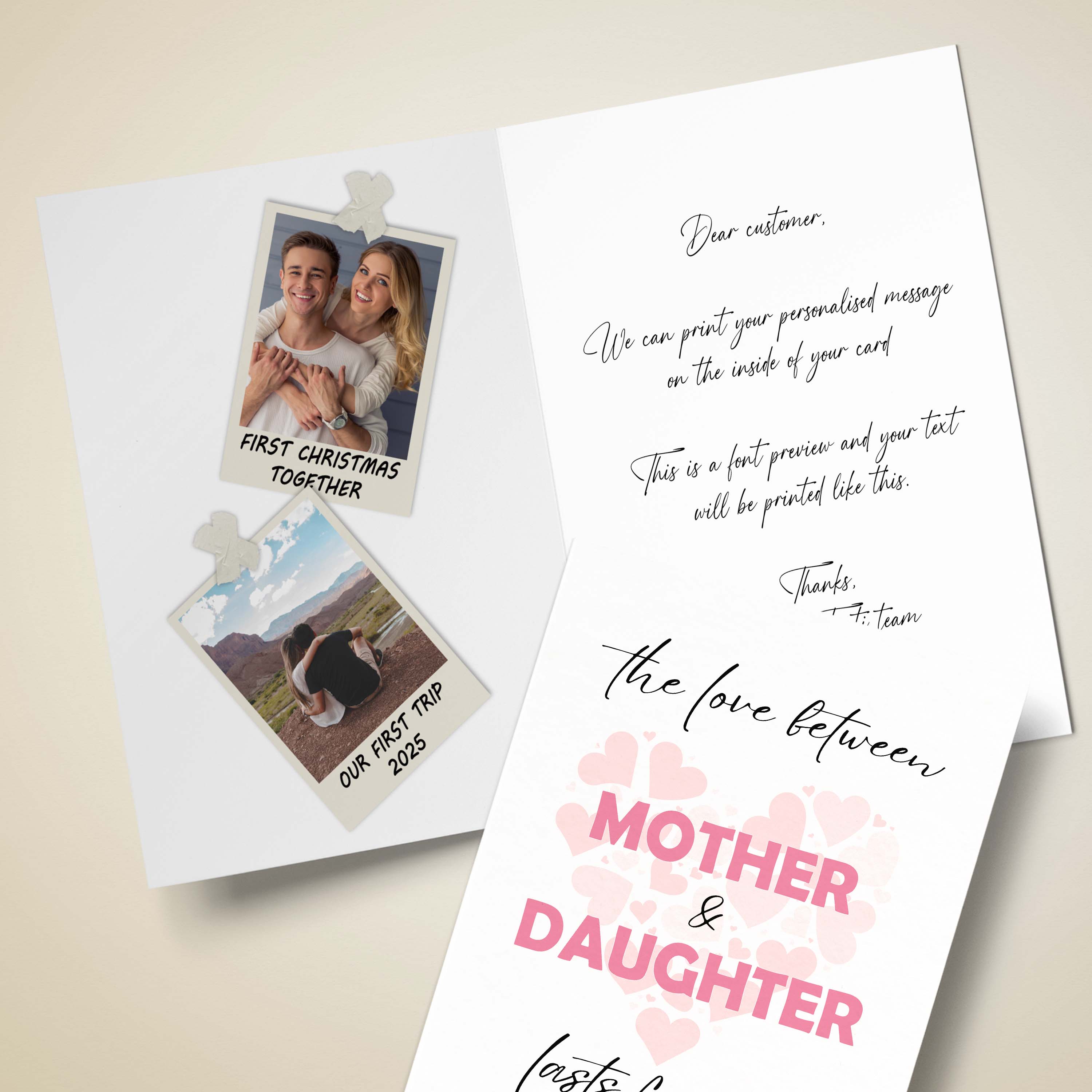 At TISATI, we offer a great option for your personalised card, which you can fully customise.