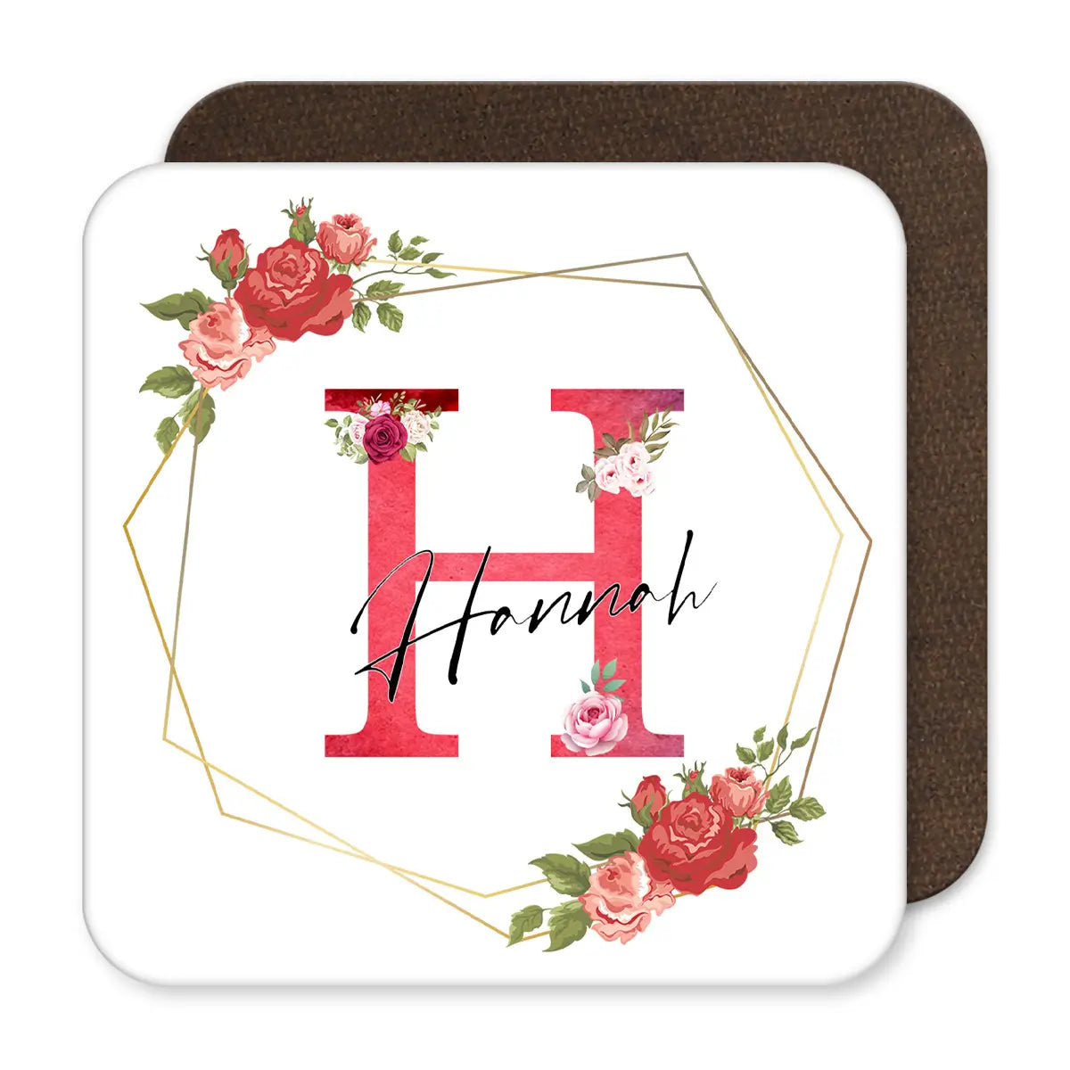 Personalised Red Flower Name Coaster